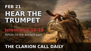 Today’s Clarion Call Daily scripture Jeremiah 6 verses 16 to 19 shows the Lord telling the people to stop, stand at the crossroads, and ask for the ancient paths, the good way, so they can walk in it and find rest for their souls. But they respond, we will not walk in it. God also says He placed watchmen to warn them and told them to listen for the sound of the trumpet, but they answered, we will not listen. Because they refused the good way and ignored the warning, God declares that consequences will come upon them. The message is clear, when God gives direction and warning, the safest response is humble obedience.