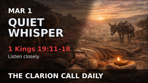 Today’s Clarion Call Daily scripture 1 Kings 19 verses 11 to 18 shows the Lord teaching Elijah how to discern His presence. Elijah stands as God passes by. A strong wind comes, then an earthquake, then a fire, but the Lord is not in those dramatic signs. After that comes a gentle, quiet whisper, and Elijah recognizes it and responds. God then asks Elijah what he is doing there, and Elijah pours out his complaint that he feels alone and threatened. The Lord answers by giving Elijah clear instructions for what to do next, including appointing leaders and anointing Elisha. God also corrects Elijah’s loneliness by revealing that there are still 7,000 in Israel who have not bowed to Baal. The message is that God often speaks with quiet clarity, not just loud power, and He sustains His servants, gives them direction, and reminds them they are not alone.