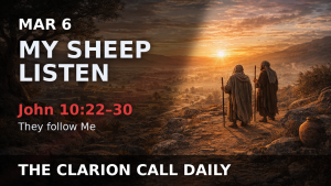 Today’s Clarion Call Daily scripture John 10 verses 22 to 30 takes place during the Feast of Dedication in Jerusalem. The religious leaders press Jesus to say plainly if He is the Christ. Jesus answers that He has already told them through His works, but they do not believe because they are not His sheep. Jesus then gives a clear mark of His true followers, My sheep hear My voice, I know them, and they follow Me. He promises them eternal life and says they will never perish, and no one can snatch them out of His hand. Jesus also says the Father, who gave them to Him, is greater than all, and no one can snatch them out of the Father’s hand. He ends with a powerful claim, I and the Father are one. The message is that true believers listen to Jesus, follow Him, and are kept secure by His power and the Father’s power.